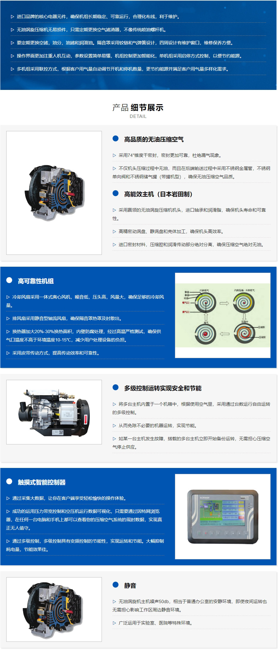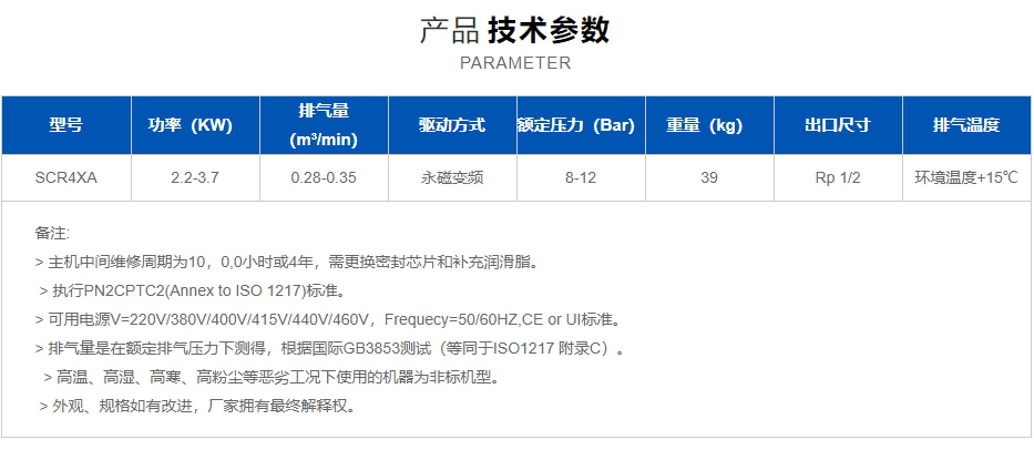 進(jìn)口軸承和潤(rùn)滑脂,確保機(jī)頭壽命和可靠性,壓縮空氣性能持久穩(wěn)定